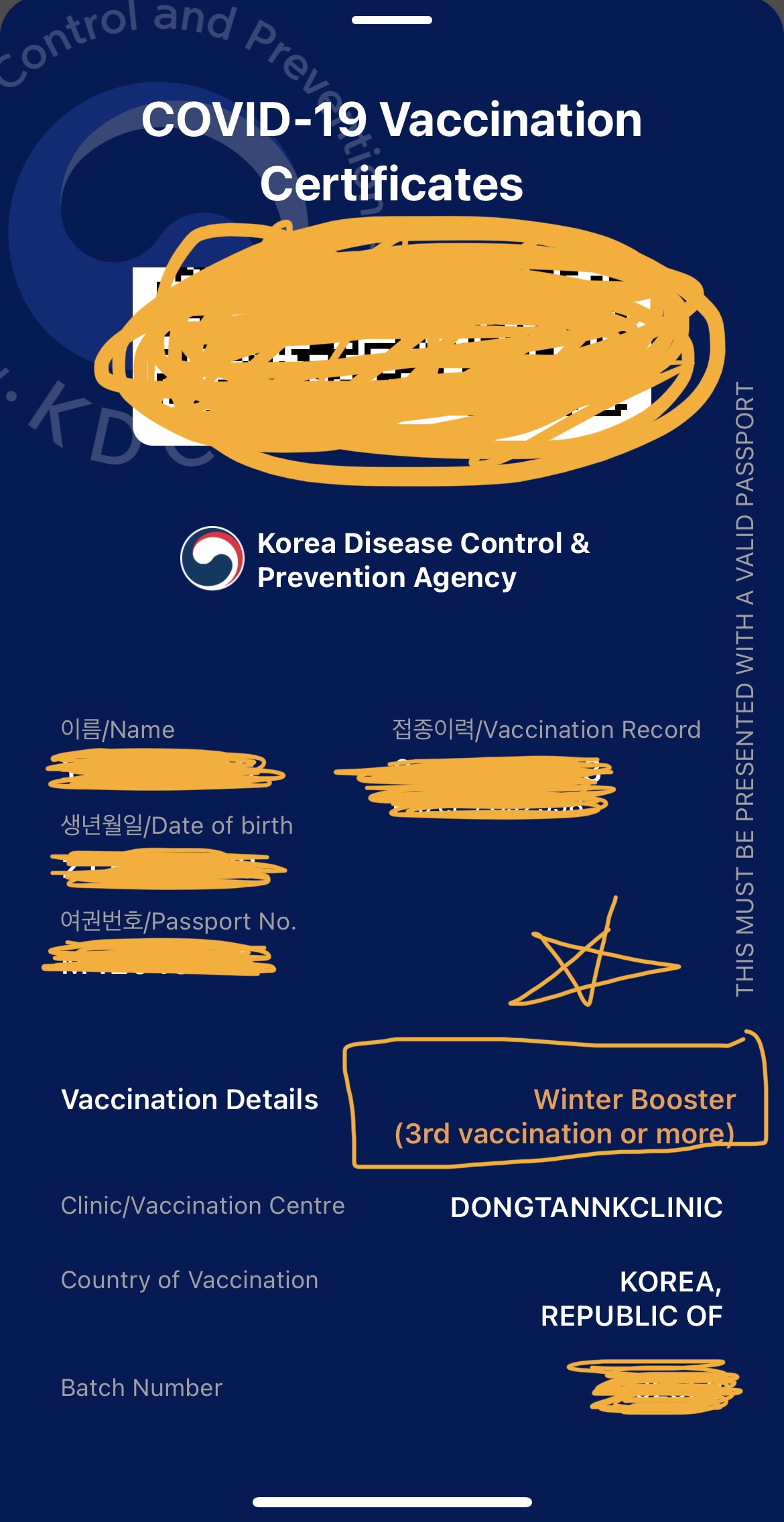 증명서를 눌러서 국제증명서를 발급받으면 Vaccination Details 란에 Winter Booster(3rd vaccination or more) 으로 표기되어있는 것을 확인 할 수 있습니다.